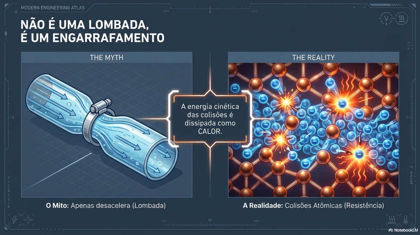 "A resistência não é sobre lentidão, mas sobre restrição: o design físico do componente dita quão difícil é a jornada do elétron, convertendo o fluxo elétrico em dissipação térmica."
