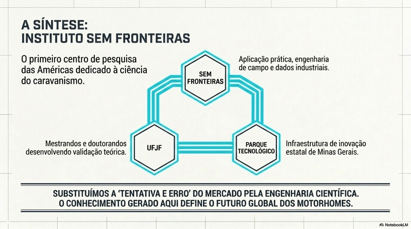 Essa ponte transforma o Brasil em um polo de tecnologia para motorhomes na América Latina, garantindo que cada solução implementada em sua casa sobre rodas tenha sido testada sob o rigor do método científico.