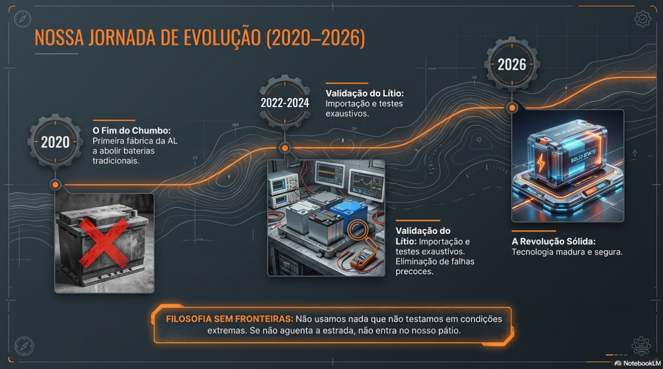 A jornada do caravanismo é, essencialmente, uma busca por liberdade. No entanto, por décadas, essa liberdade foi limitada pela "ansiedade elétrica". Começamos com as pesadas baterias de chumbo-ácido e, em 2022, na Sem Fronteiras, tivemos o orgulho de ser a primeira fábrica da América Latina a abolir essa tecnologia obsoleta, adotando o lítio. Mas o caminho da inovação não para. Hoje, estamos diante do que chamo de "destino final" para quem vive na estrada: as baterias de estado sólido. Se você está planejando sua próxima expedição, sente-se no sofá, pegue seu mate gelado e entenda por que este é o maior salto tecnológico da década.